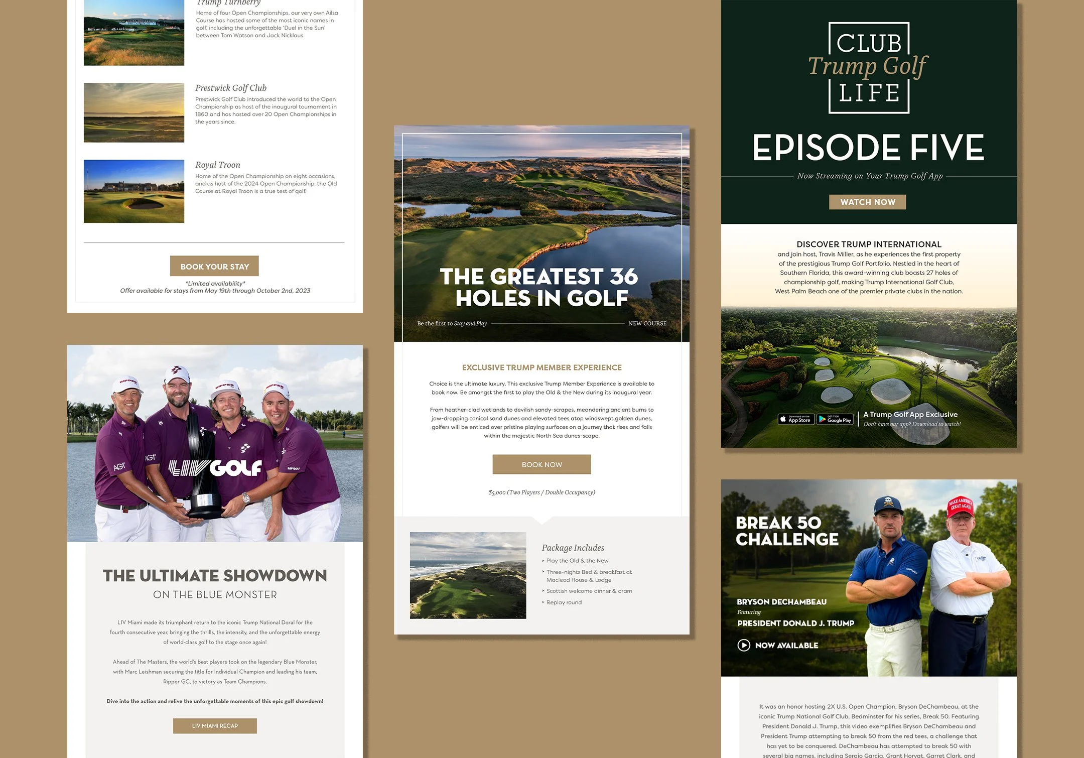 trump golf, corporateWith over 18 courses worldwide, Trump Golf needed a unified brand presence that still allowed each location to shine. We created a streamlined style guide that strengthened their overall identity and simplified marketing efforts across digital, social, and on-site membership communications.